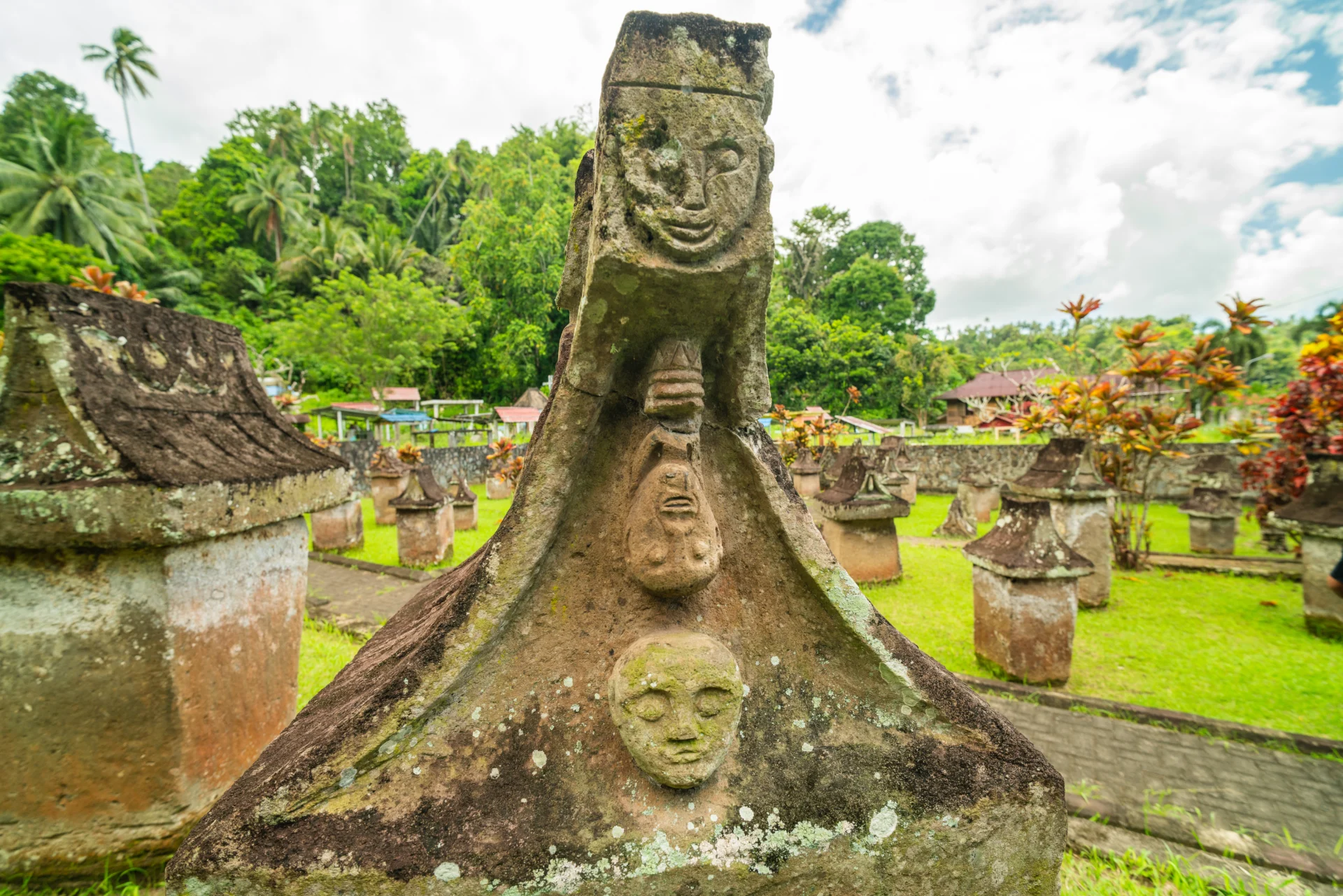 Waruga are ancient above-ground stone sarcophagi found in North Sulawesi, especially in the Minahasa region, dating back to around the 8th century. Traditionally used by nobles, these carved burial chambers reflect early Minahasan beliefs in ancestor worship and the afterlife. Although their use declined with the spread of Christianity, Waruga remain an important cultural symbol and a testament to the region’s rich heritage.